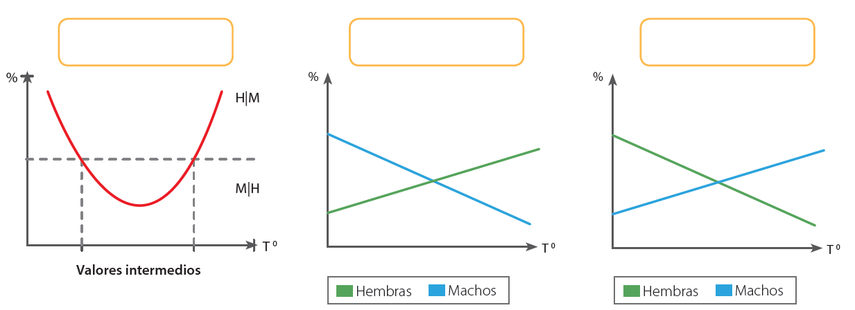 - identifique la gráfica que explica cada modelo “Determinación sexual por temperatura”.